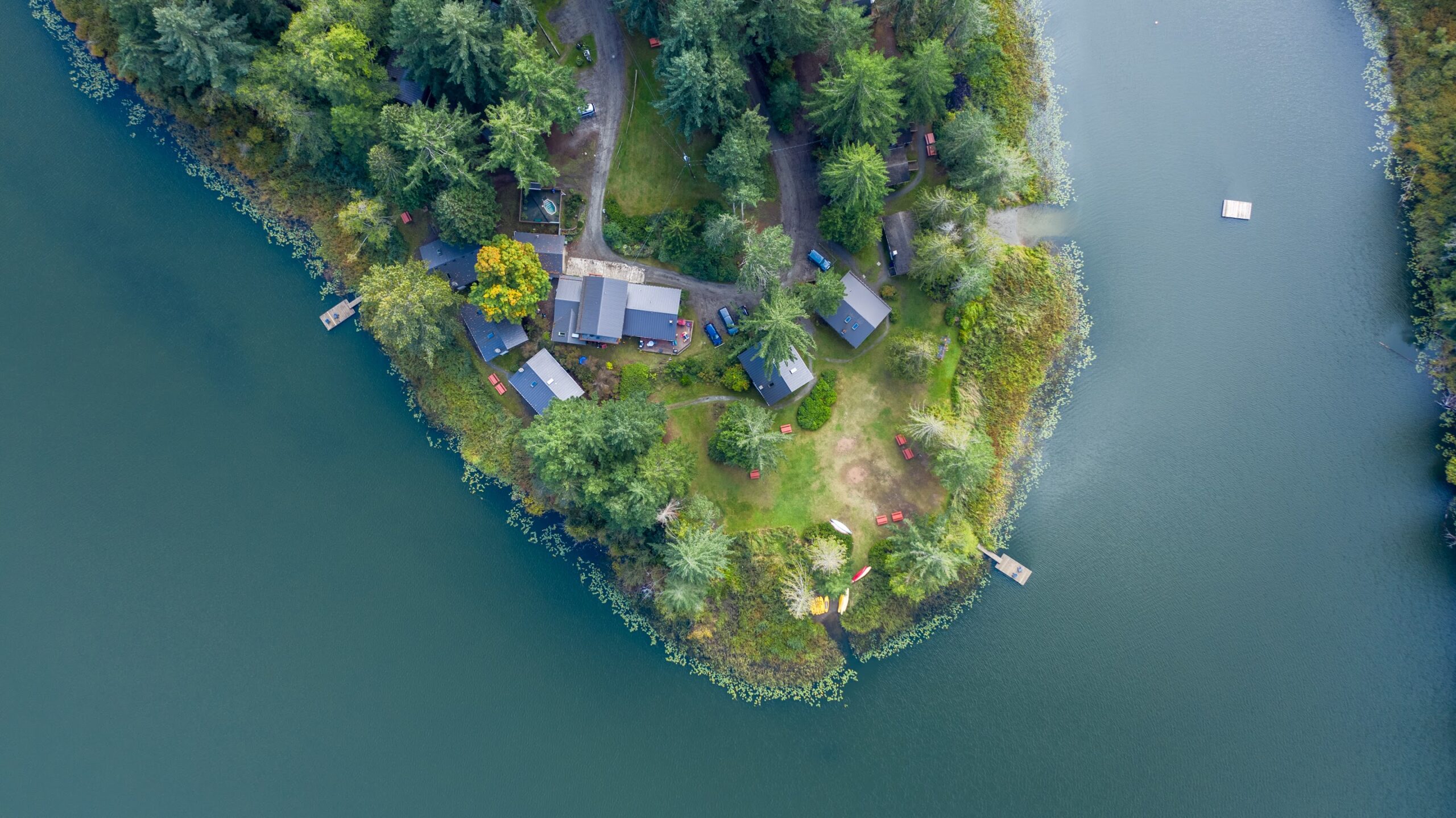 Cusheon Lake Resort is the only resort on Cusheon Lake on Salt Spring Island off the coast of beautiful British Columbia, Canada. The resort is on four acres at the tip of a peninsula that juts out into the lake. This spectacular horseshoe of water frontage means each chalet and cabin is a private retreat with a lake view. Each log cabin accommodation has a wood-burning fireplace and one or two bedrooms. Cedar chalets have large decks, a main floor bedroom and single beds in the loft. All cottages have fully equipped kitchens. Cusheon Lake Resort features complimentary canoes, kayaks, SUPs, shared hot tub, a barrel sauna, seasonal daily firewood delivery and more.